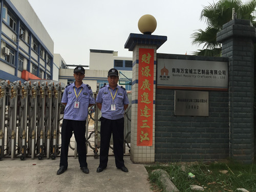 南海萬寶城工藝制品公司與我司于2014年4月達成保安服務協議,我公司全面負責其辦公及生產廠區的安全保衛服務,共配備保安人員18名。