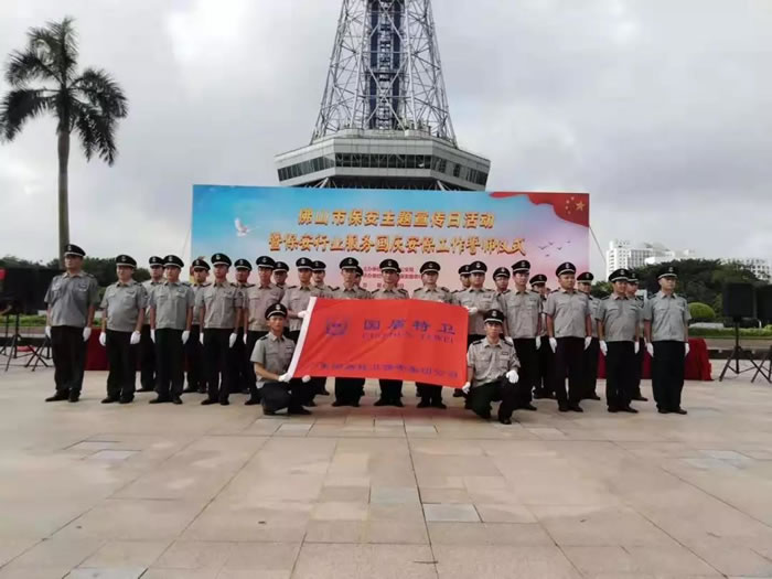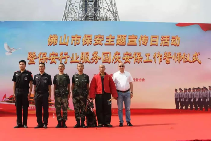 為了迎接中華人民共和國70周年華誕,號召全市保安積極行動起來,7月24日上午,佛山市保安服務行業在禪城區嶺南明珠電視塔廣場,與全國、全省同步,舉行了隆重的聲勢浩大的“佛山市保安主題宣傳日暨保安行業服務國慶安保誓師儀式”。廣東國盾特衛保安集團有限公司董事長夏學樹率領其集團公司方隊全程參加,在技防操演中,國盾特衛保安集團特種犬護衛隊威武亮相,成為全場亮點,受到各方好評。