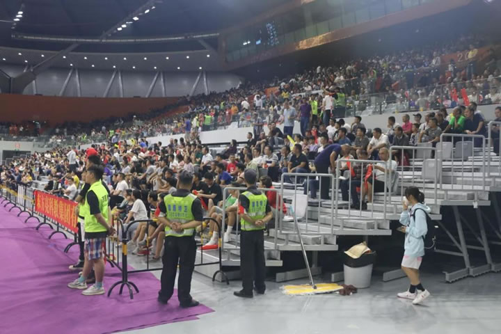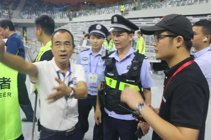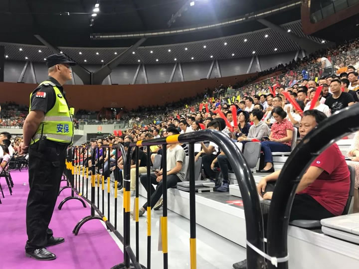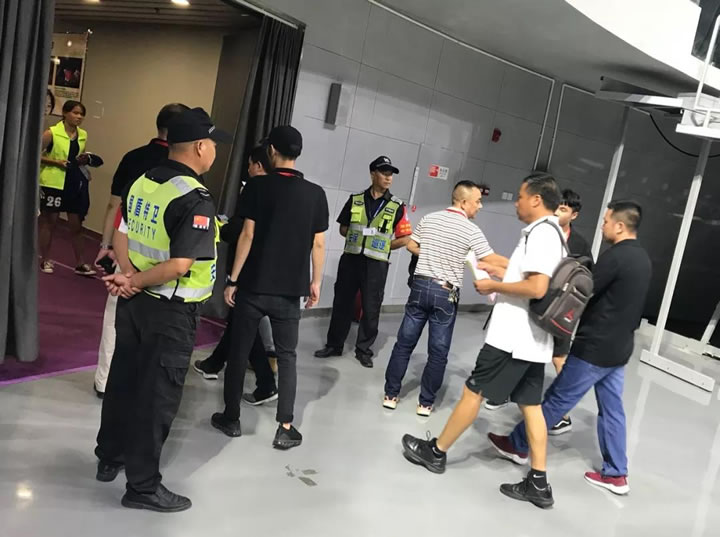 由于這場(chǎng)職業(yè)籃球挑戰(zhàn)賽有著名CBA球星易建聯(lián)參賽,人氣熱度較高,門票一早已預(yù)售完畢。肇慶市政府對(duì)這場(chǎng)籃球賽事高度重視并作出了工作部署,成立現(xiàn)場(chǎng)協(xié)調(diào)指揮部,我司被主辦方邀請(qǐng)擔(dān)任這場(chǎng)賽事的安保主要力量。
