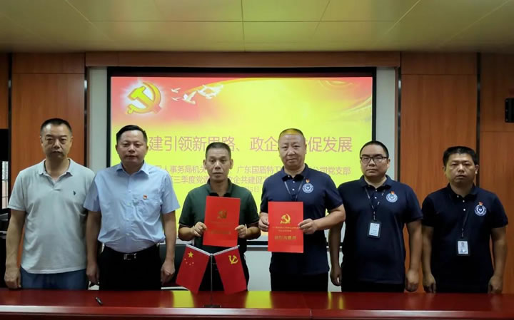 為進一步發揮基層黨組織先鋒堡壘作用,強化黨組織之間交流合作,促進資源共享、優勢互補,助推發展共贏。8月5日上午,中共佛山市三水區退役軍人事務局機關支部委員會與中共廣東國盾特衛保安集團有限公司支部委員會開展黨課學習共建活動,并在區退役軍人事務局黨建會議室舉行了2020年“政企共建促發展”簽約儀式。