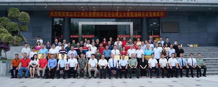 成立大會結束后,陳維展少將、市退役軍人事務局副局長廖沙、副區長方小兵、區武裝部政委陳勇才、75752部隊政治工作部副主任蘇飛、愛促會會長、副會長、秘書長共同為三水區愛國擁軍促進會進行揭牌儀式,與會領導及愛促會全體成員一同參觀愛促會會址并合影留念。