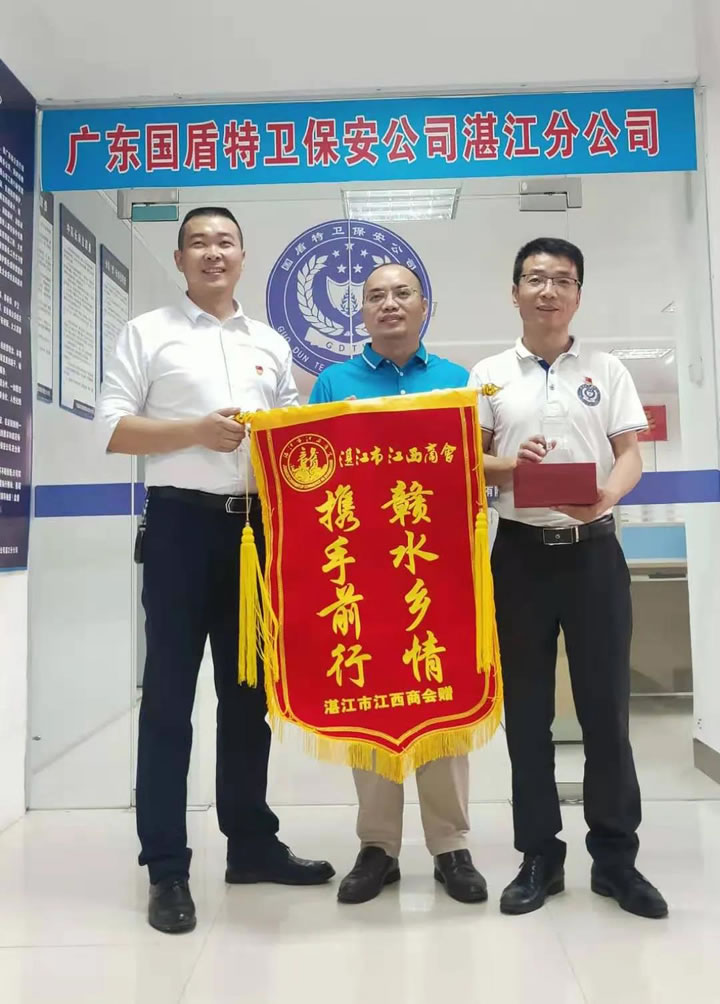 為進一步學習貫徹習近平總書記在廣東考察時的重要講話精神,弘揚墾荒精神,推動改革發展。根據商會年度工作安排,廣東國盾特衛保安集團有限公司湛江分公司特邀湛江市江西商會領導蒞臨公司指導工作。11月19日下午,由商會輪值會長吳明凡、秘書長洪艷、甘小琴牽頭組織會員等一行人到達廣東國盾特衛保安集團有限公司湛江分公司,湛江分公司黨支部書記、總經理楊仁岳、行政經理鄢小豐及辦公室全體員工對商會一行的到來表示熱烈歡迎,并組織召開座談會。