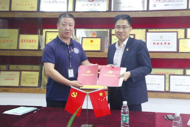 簽約儀式上,中國銀行佛山三水支行和廣東國盾特衛保安集團雙方代表負責人在與會人員的見證下,簽署了《黨建共建合作協議書》、《廉潔伙伴協議書》,并交換了共建牌匾,共同建立學習教育常態化、制度化,推動雙方加強深度合作、提升經營管理效率提供了堅實的平臺,實現黨支部互補,黨建工作互動,為推動地方經濟安全穩定發展作出貢獻。