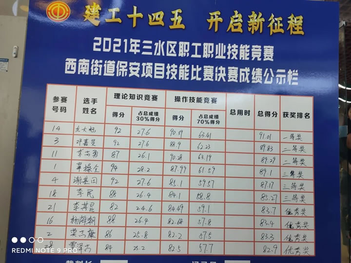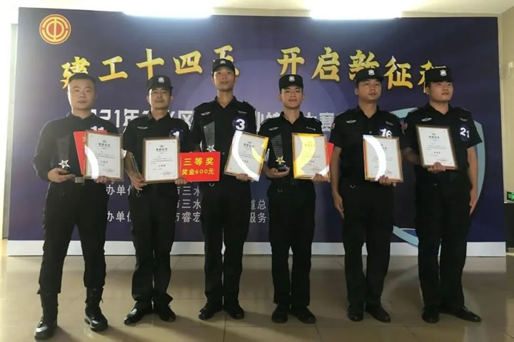 為搭建展示保安職業(yè)技能人才才能的平臺(tái),通過技能練兵、比武競賽,培養(yǎng)一批愛國敬業(yè)、技藝精湛、具有專門技能的人才, 進(jìn)一步提升保安從業(yè)人員的安全服務(wù)技能,推動(dòng)行業(yè)整體服務(wù)水平的不斷提高。9月29日, “建功十四五 開啟新征程” — 2021年三水區(qū)西南街道保安員職業(yè)技能競賽在水都基地職工服務(wù)中心舉行。該競賽由佛山市三水區(qū)總工會(huì)、西南街道總工會(huì)主辦,共有12家單位28名保安員選手參賽,我司代表參賽選手龍大標(biāo)、鄧嘉賢、李志勇、辜操全、李其昆、楊海潮分別獲得一等獎(jiǎng)、二等獎(jiǎng)、三等獎(jiǎng)、優(yōu)秀獎(jiǎng)。