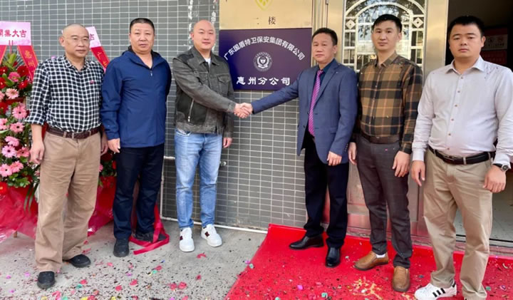 集團公司黨支部書記、董事長夏學(xué)樹與惠州分公司總經(jīng)理盧群堆共同揭牌,惠州分公司的成立標志著國盾特衛(wèi)保安集團在布局粵港澳大灣區(qū)又邁出了堅實的一步。