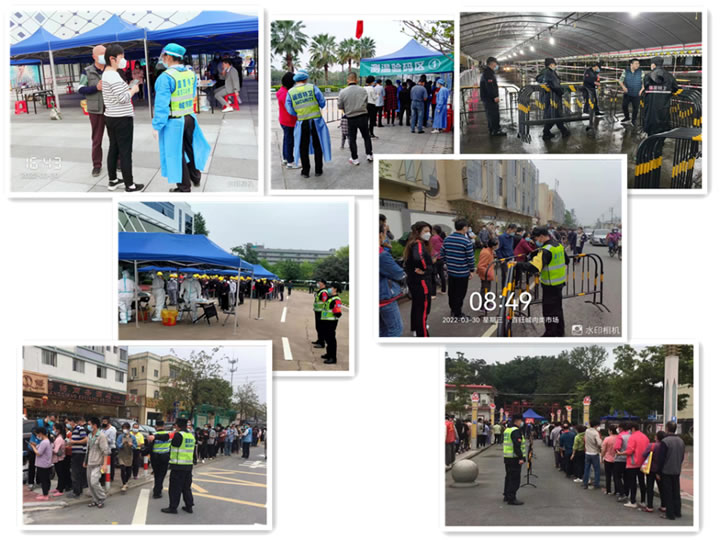 2月底以來,新冠疫情在全國多地呈復(fù)燃之勢(shì),各地戰(zhàn)疫又進(jìn)入一個(gè)新階段。3月27日夜,三水區(qū)在隔離管控的密接者中發(fā)現(xiàn)1例新冠病毒陽性感染者。這一則突如其來的消息打破了三水的平靜,導(dǎo)致部分片區(qū)居民的健康碼變黃,防疫形勢(shì)嚴(yán)峻。很多人市民擔(dān)心影響上班工作以及小朋友返校,紛紛連夜趕往各核酸檢測點(diǎn)排隊(duì)檢測,各醫(yī)院核酸檢測點(diǎn)人手不足檢測那么多人,一時(shí)間人滿為患。國盾特衛(wèi)保安集團(tuán)積極響應(yīng)三水區(qū)政府部門應(yīng)急防疫要求,火速調(diào)集各駐點(diǎn)隊(duì)員奔赴一線,協(xié)助并支援開展重點(diǎn)人員防控以及核酸檢測秩序維護(hù)。此次支援任務(wù)重、涉及面廣,隊(duì)員服從上級(jí)部門指揮,克服一切困難,不辜負(fù)群眾的期望,此次支援工作切實(shí)彰顯了國盾特衛(wèi)人履職盡責(zé)、忠誠擔(dān)當(dāng)?shù)牧己米黠L(fēng),得到有關(guān)部門和市民的好評(píng)。