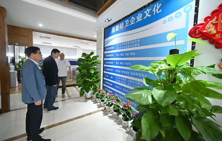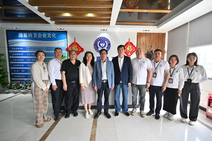 座談交流中,孔憲明總裁首先介紹了中保華安集團近年來在人防、技防、裝備建設,尤其是“走出去”在境外安保的經驗做法,并對廣東國盾特衛保安集團有限公司“立足佛山三水,服務廣東,走向全國”取得的成績表示贊許,同時也對該公司未來發展提出了建設性意見建議:一是合法合規經營始終是保安企業的生命線,必須嚴格遵守;二是多元化、多業態發展是未來保安企業發展的方向,要勇于創新變革,拓展保安市場新業態;三是科技要為保安服務、經營管理等賦能,才能產生服務力、生產力和管理力的效能;四是企業發展要有長期愿景和中短期的戰略規劃。