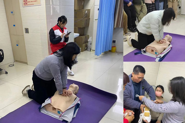 應急處置技能培訓授課采用理論知識講解和實際操作相結合的方式,由佛山市三水區人民醫院應急救護師黃偉彪、黃健儀兩位老師對心肺復蘇、創傷包扎等多項內容進行了系統講解,并重點演練了心臟按壓、人工呼吸、創傷包扎等內容,還特別強調在處置突發事件時的心理素質和應對策略,面對緊急情況時能保持冷靜,做出正確的判斷和反應。