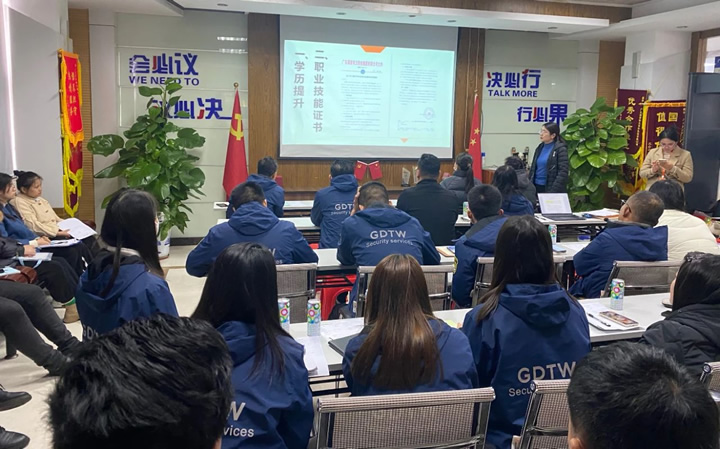集團公司還邀請了領航集團小艇教育組織一場以“提升學歷水平、提高行業技能”為主題的培訓交流會,姚老師為各個行政管理人員介紹了國家提升學歷水平的各種渠道以及考試內容,姚老師還詳細介紹了與安保行業相關的職業技能資格證書,以及2024年全年的職業技能證書考試時間及備考復習技巧。
