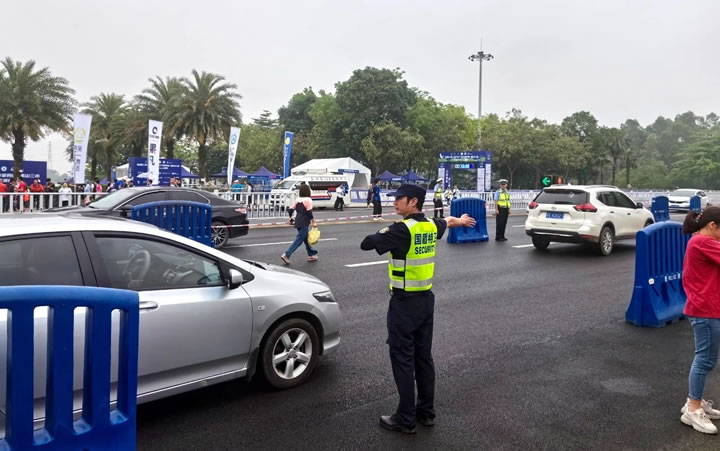 5月4日凌晨4時,我司240名安保人員已準時到達現場集結,著裝整齊、精神抖擻,按照安保工作預案提前到達各區域指定點位,對安保崗位的設置再次熟悉并進行對接,確保賽場沿途秩序,保障參賽選手和觀賽群眾安全,并根據現場情況及時調整安保措施。由于賽事活動涉及范圍較廣,保安員各司其職、各盡其責做好賽事前的清障工作,在主賽區協助技術官對參賽者以及觀賽群眾進行疏導分流;在卡點及路口維持秩序,協助公安機關做好分流引導、交通管制等各項任務,確保整場賽事活動安全有序。